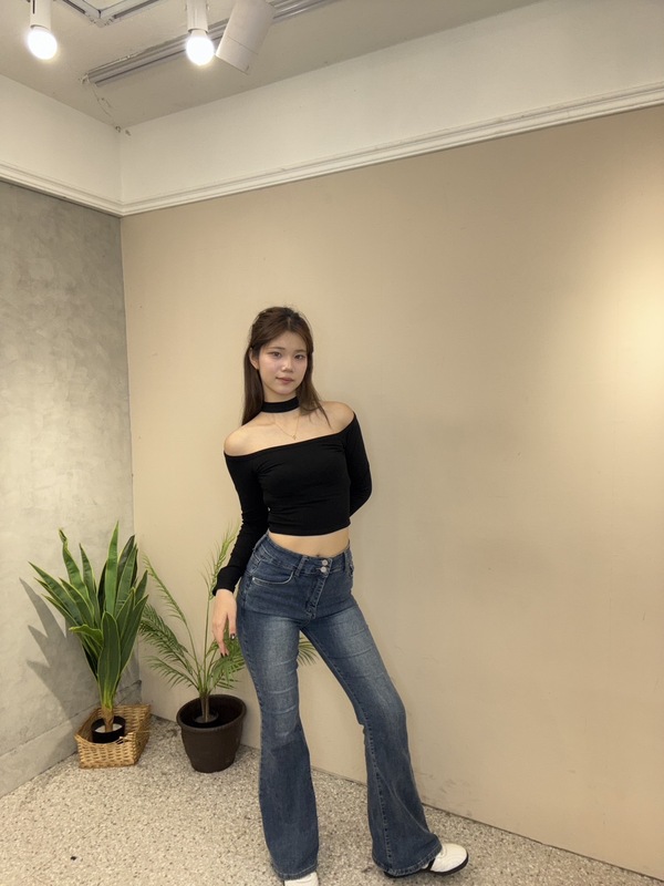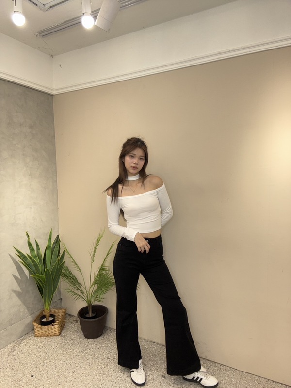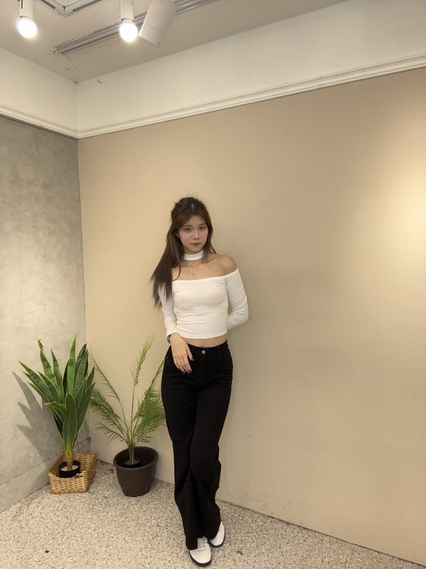 一字領短版上衣