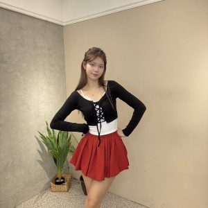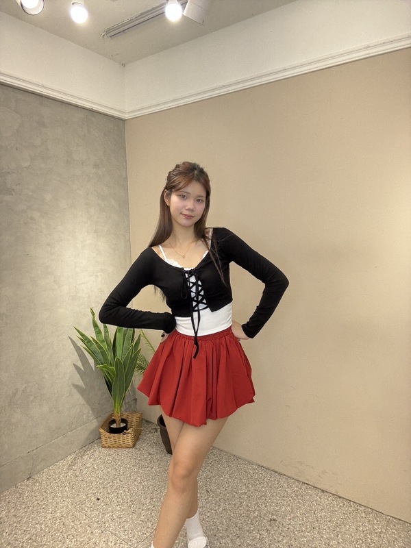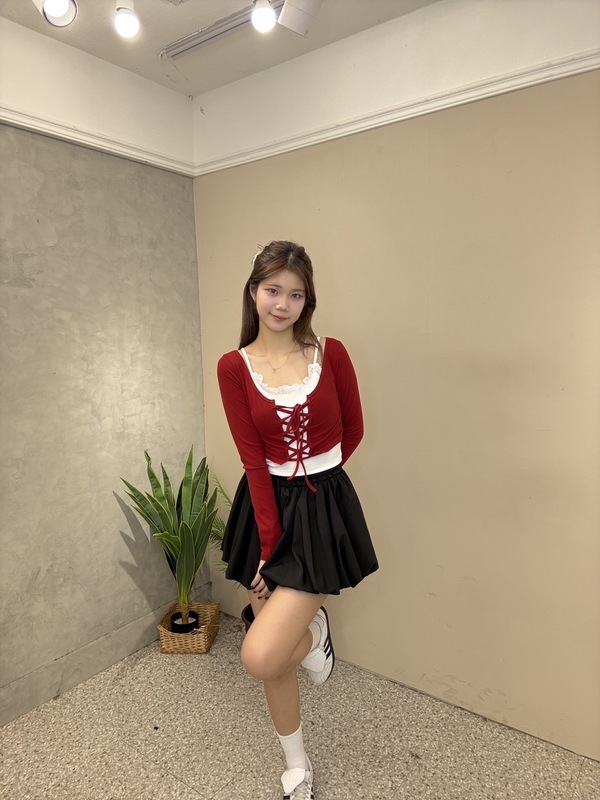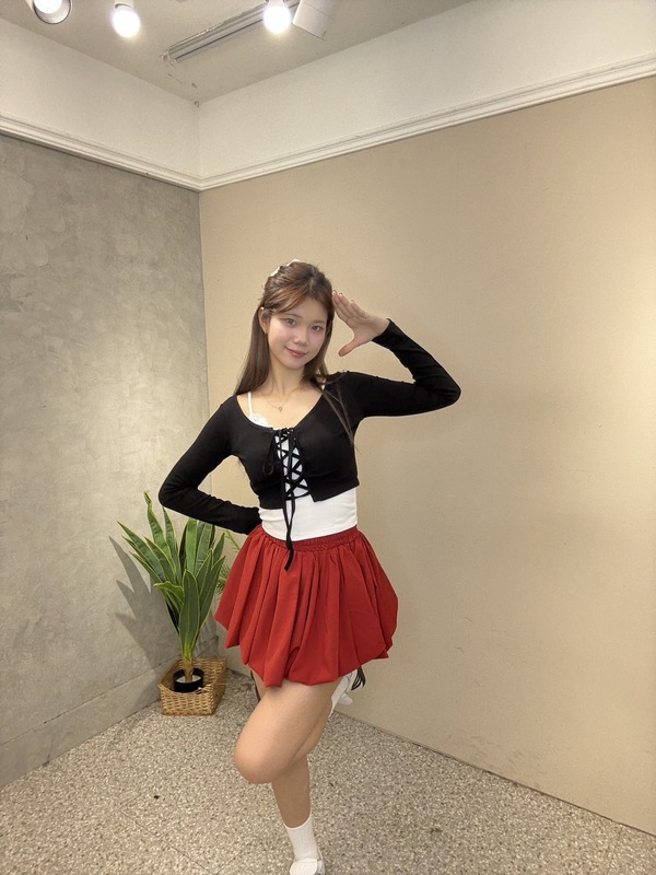 以紅黑經典配色打造少女系穿搭,將甜美與俏皮一次展現。