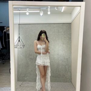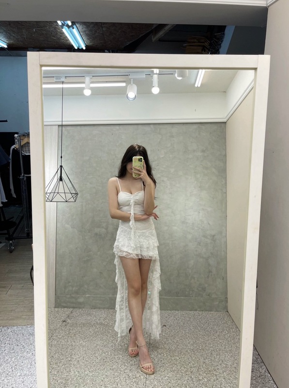 Amazing整件緹花 超辣前短後長甜甜辣妹洋 前桃心超吸睛 可調細肩帶讓你輕鬆調整高低 滿滿的紗讓你不管是拍照吃飯 都可以是全場焦點