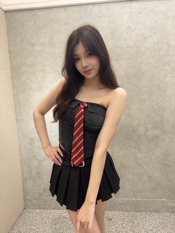 搭配高腰學院風傘裙